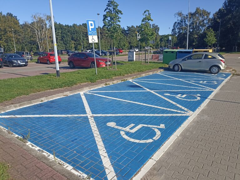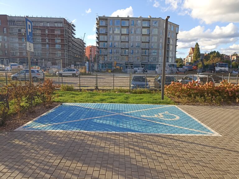 Bardzo szerokie i wygodne miejsce postojowe przy ul. Kotwiczników w Gdańsku zostało przygotowane z myślą o osobach z niepełnosprawnościami. Dzięki pełnemu oznakowaniu pionowemu i poziomemu jest ono dobrze widoczne i łatwe do zlokalizowania. Nawierzchnia z fazowanej kostki brukowej jest równa…