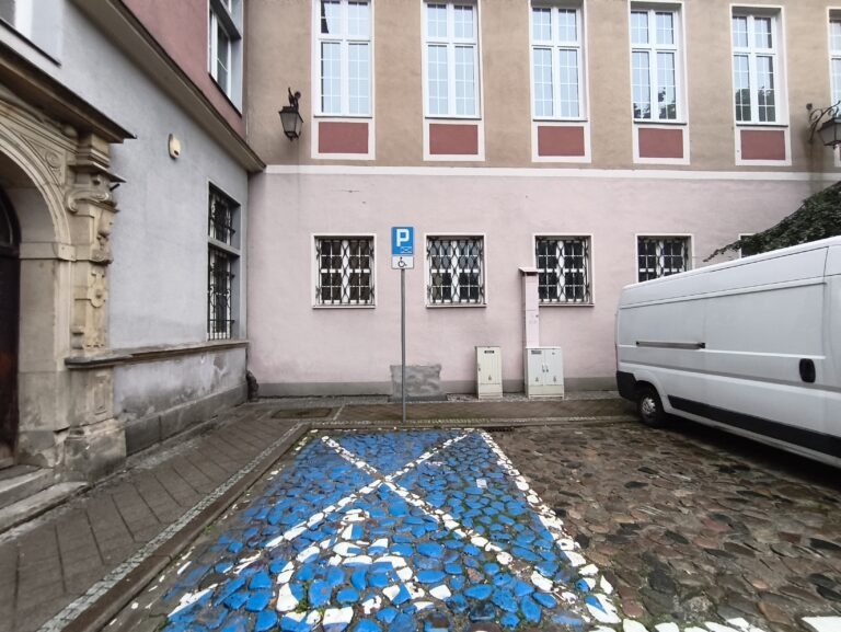 Przy ul. Bogusławskiego 1 obok Teatru Szekspirowskiego znajduje się jedno ogólnodostępne miejsce postojowe przeznaczone dla osób z niepełnosprawnościami. Jest ono usytuowane równolegle, na nawierzchni z kostki brukowej w bardzo dobrym stanie technicznym. Niestety, oznakowanie poziome nie jest w pełni czytelne,…