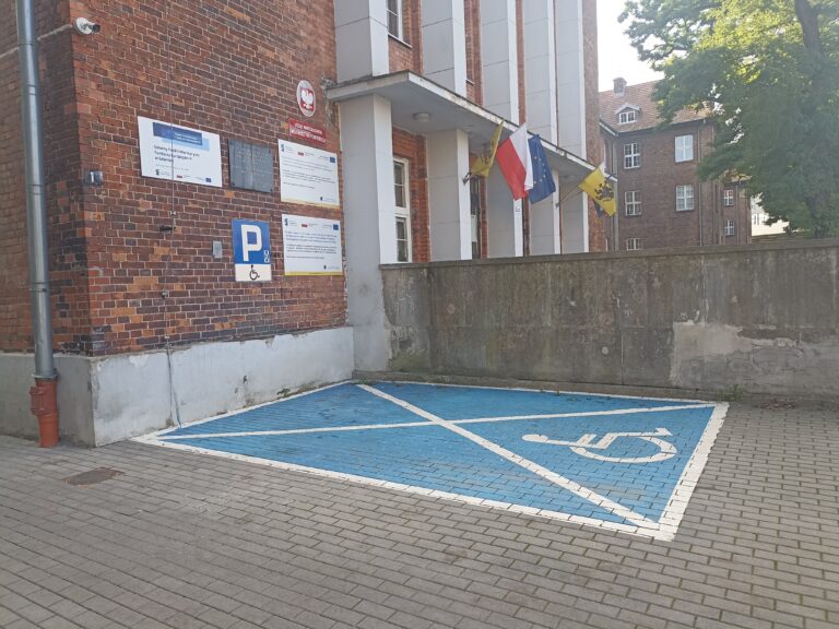 Bezpośrednio przed gmachem Urzędu Marszałkowskiego Województwa Pomorskiego znajduje się jedno, podstawowe miejsce parkingowe przeznaczone dla osób z niepełnosprawnościami. Umiejscowione prostopadle do budynku, z pełnym oznakowaniem pionowym i poziomym, jest łatwo zauważalne i intuicyjne w użytkowaniu. Dzięki szerokiemu wjazdowi oraz bardzo…