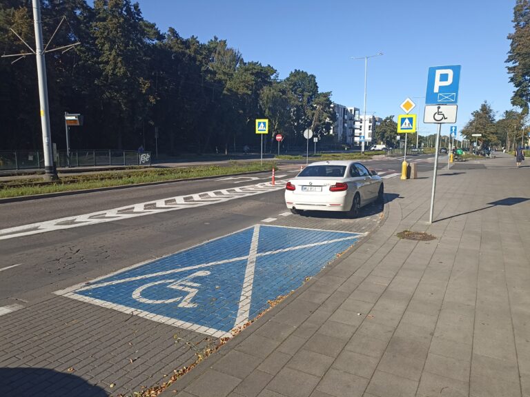 Na skrzyżowaniu ulic Dworskiej i Hallera w Gdańsku (Brzeźno) znajdują się 2 miejsca parkingowe przeznaczone dla osób z niepełnosprawnością. Stanowiska są dobrze oznakowane (pionowo i poziomo), a ich nawierzchnia jest mieszana – częściowo z asfaltu, a częściowo z kostki betonowej.…