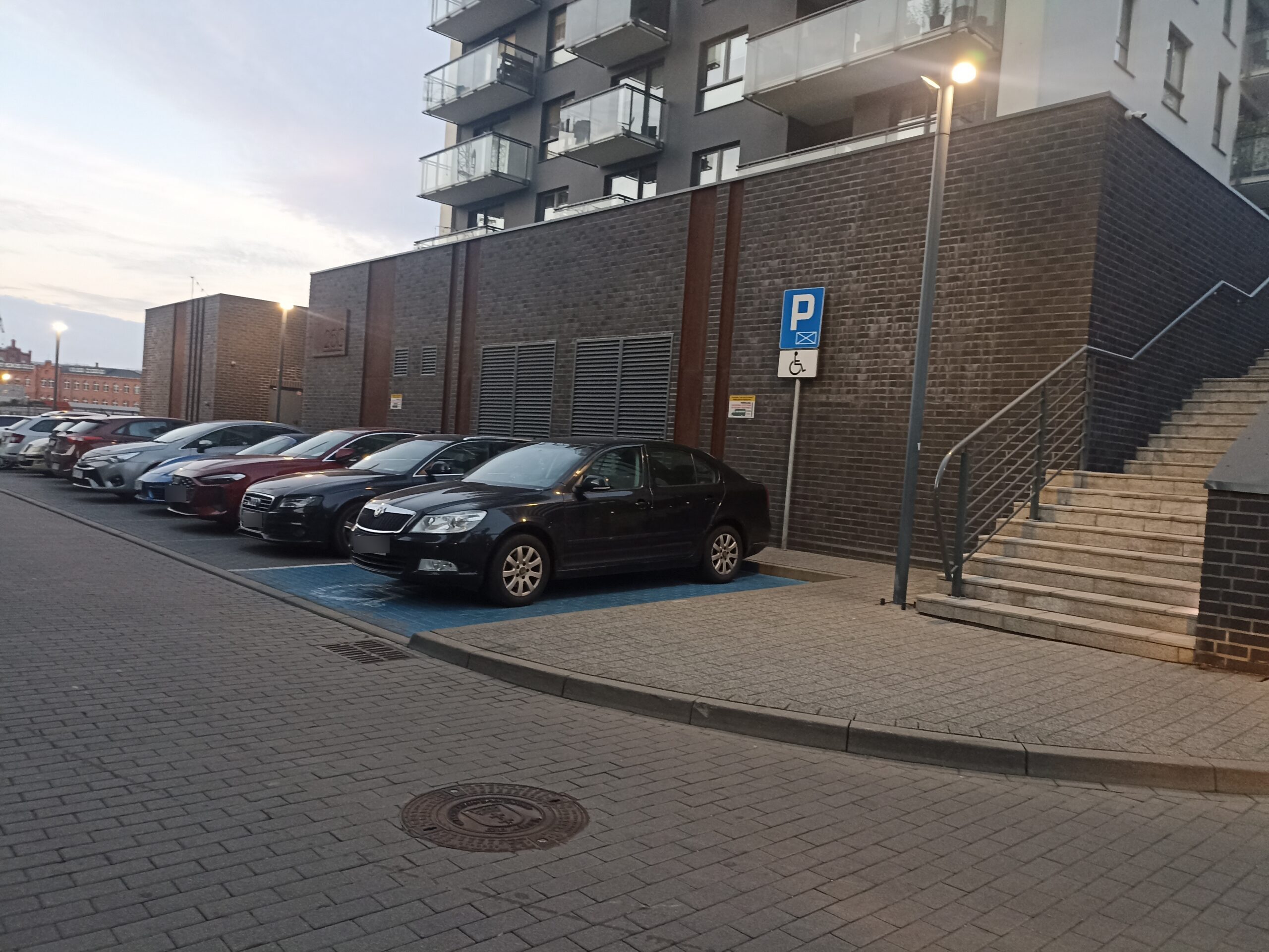 Parking jest bezpłatny, ogólnodostępny i bez limitu czasowego, co czyni go szczególnie praktycznym dla osób odwiedzających pobliskie miejsca – sklep, aptekę, szkołę, urząd, plac zabaw czy przychodnię. Choć stanowisko ma standardową szerokość, jego bliskość do ważnych punktów usługowych i instytucji publicznych sprawia, że jest to dogodna i przyjazna lokalizacja dla osób z niepełnosprawnością.