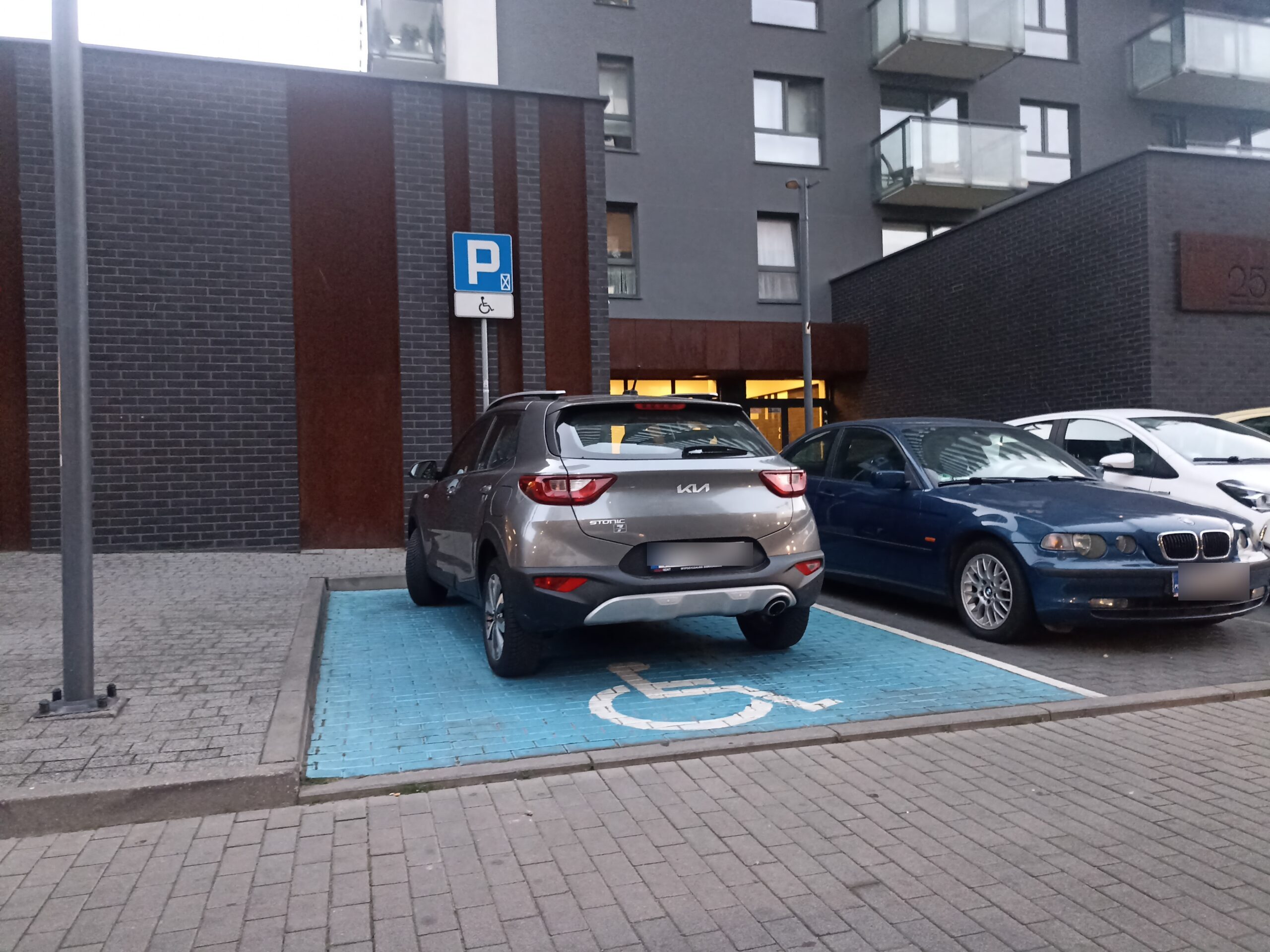 Nawierzchnia wykonana z kostki betonowej w bardzo dobrym stanie gwarantuje stabilne i bezpieczne poruszanie się, także osobom korzystającym z kul czy wózków. Miejsce jest oświetlone, co zwiększa komfort i poczucie bezpieczeństwa po zmroku. Choć nie ma tu zadaszenia ani monitoringu, lokalizacja i jakość wykonania sprawiają, że jest to funkcjonalny i godny polecenia punkt postojowy dla osób z niepełnosprawnością.