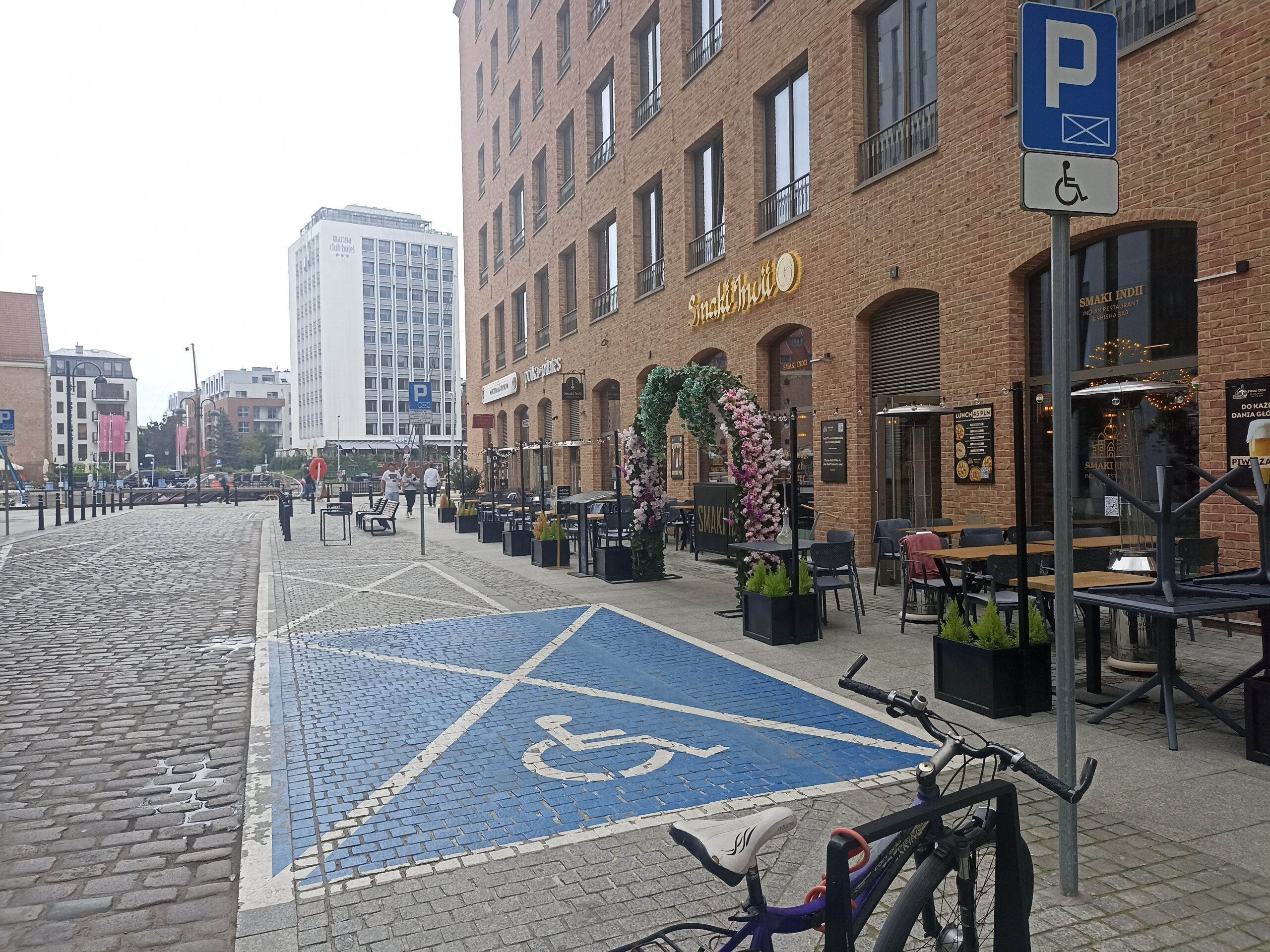 Miejsce postojowe dla osób z niepełnosprawnościami położone jest w samym sercu Wyspy Spichrzów, w otoczeniu restauracji, kawiarni i punktów gastronomicznych. Dzięki swojej lokalizacji stanowi wyjątkowo dogodne rozwiązanie dla osób chcących korzystać z uroków tej części miasta – zarówno podczas spotkań towarzyskich, jak i codziennych spraw. Nawierzchnia z kostki betonowej jest w bardzo dobrym stanie, a równoległy sposób parkowania ułatwia bezpieczne wysiadanie. Pełne oznakowanie – pionowe i poziome – sprawia, że miejsce jest dobrze widoczne i respektowane.
