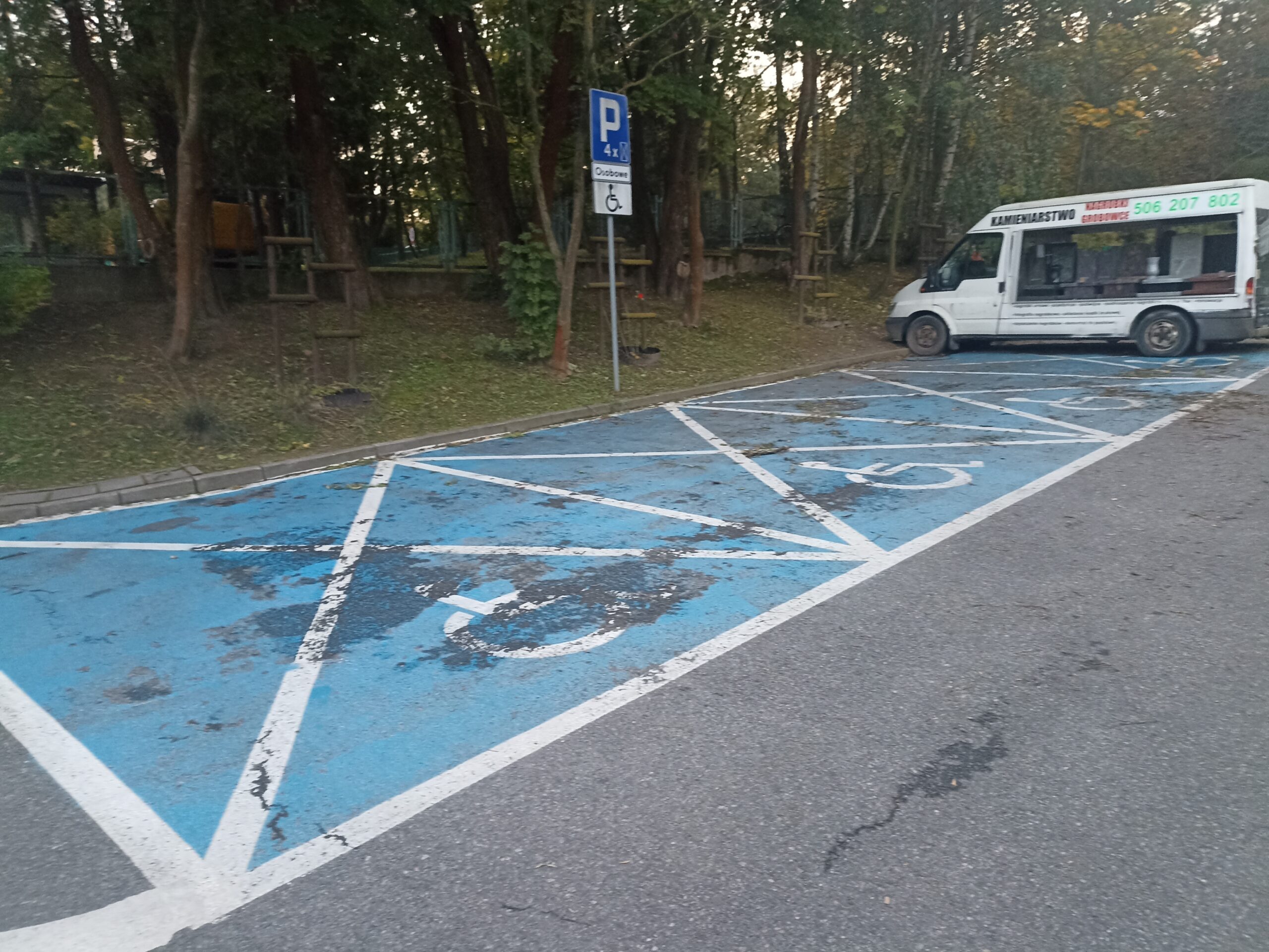 Miejsca są ogólnodostępne i bezpłatne, z możliwością parkowania bez limitu czasu. Po zmroku teren jest dobrze oświetlony, co zwiększa poczucie bezpieczeństwa. Warto jednak pamiętać, że jedno z miejsc jest zajęte przez samochód z reklamą, co może chwilowo ograniczyć dostępność. Dzięki bliskości sklepu i wejścia do budynku, lokalizacja ta jest szczególnie dogodna dla osób o ograniczonej mobilności odwiedzających cmentarz.