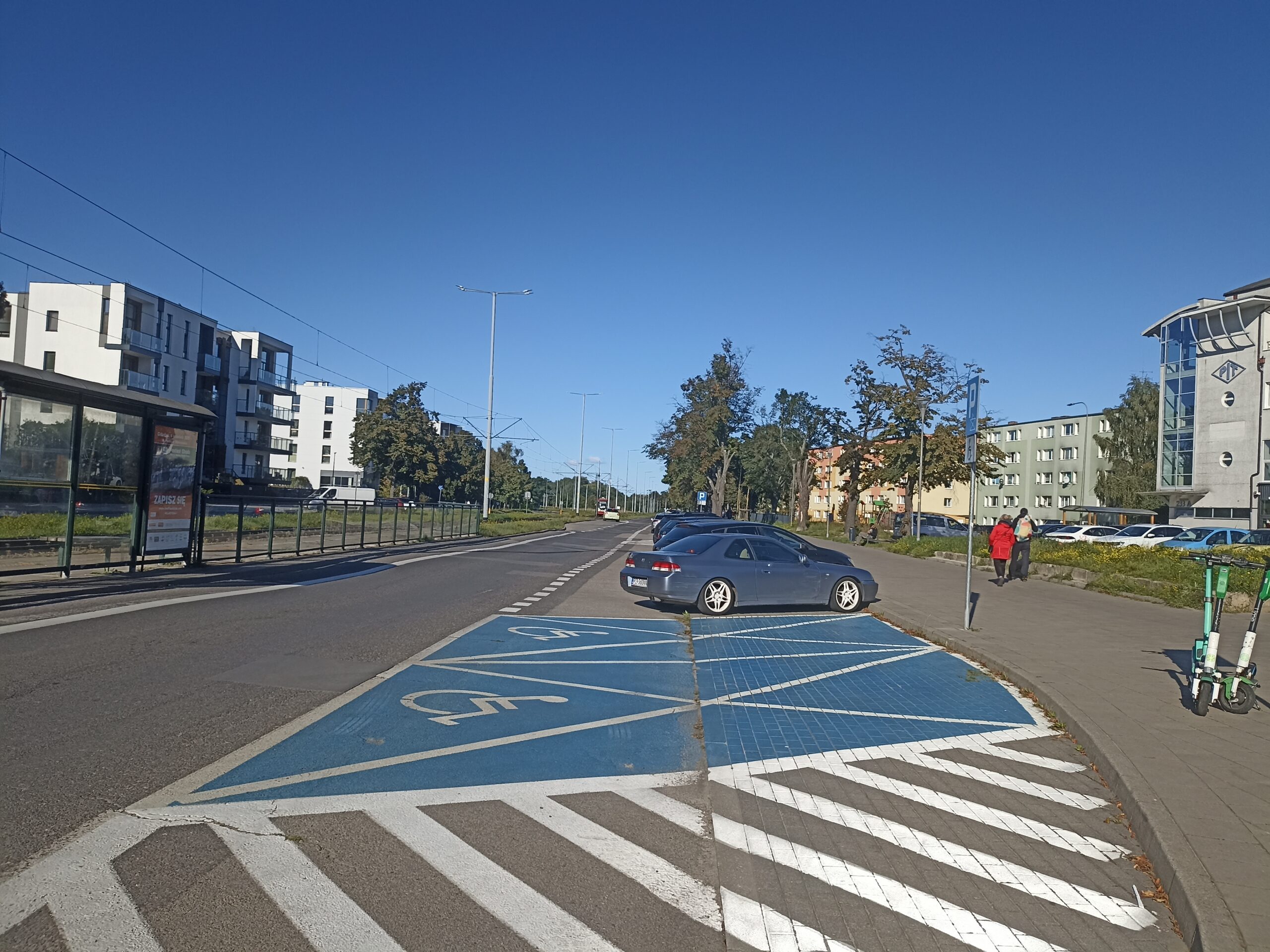 Na skrzyżowaniu ulic Dworskiej i Hallera w Gdańsku (Brzeźno) znajdują się 2 miejsca parkingowe przeznaczone dla osób z niepełnosprawnością. Stanowiska są dobrze oznakowane (pionowo i poziomo), a ich nawierzchnia jest mieszana – częściowo z asfaltu, a częściowo z kostki betonowej. Parkowanie odbywa się w układzie skośnym, co ułatwia wjazd i wyjazd z miejsca, a także bezpieczne wysiadanie z pojazdu. Dzięki lokalizacji przy samym skrzyżowaniu oraz w pobliżu sklepów i przystanku komunikacji miejskiej, parking jest bardzo funkcjonalny dla osób z ograniczoną mobilnością.