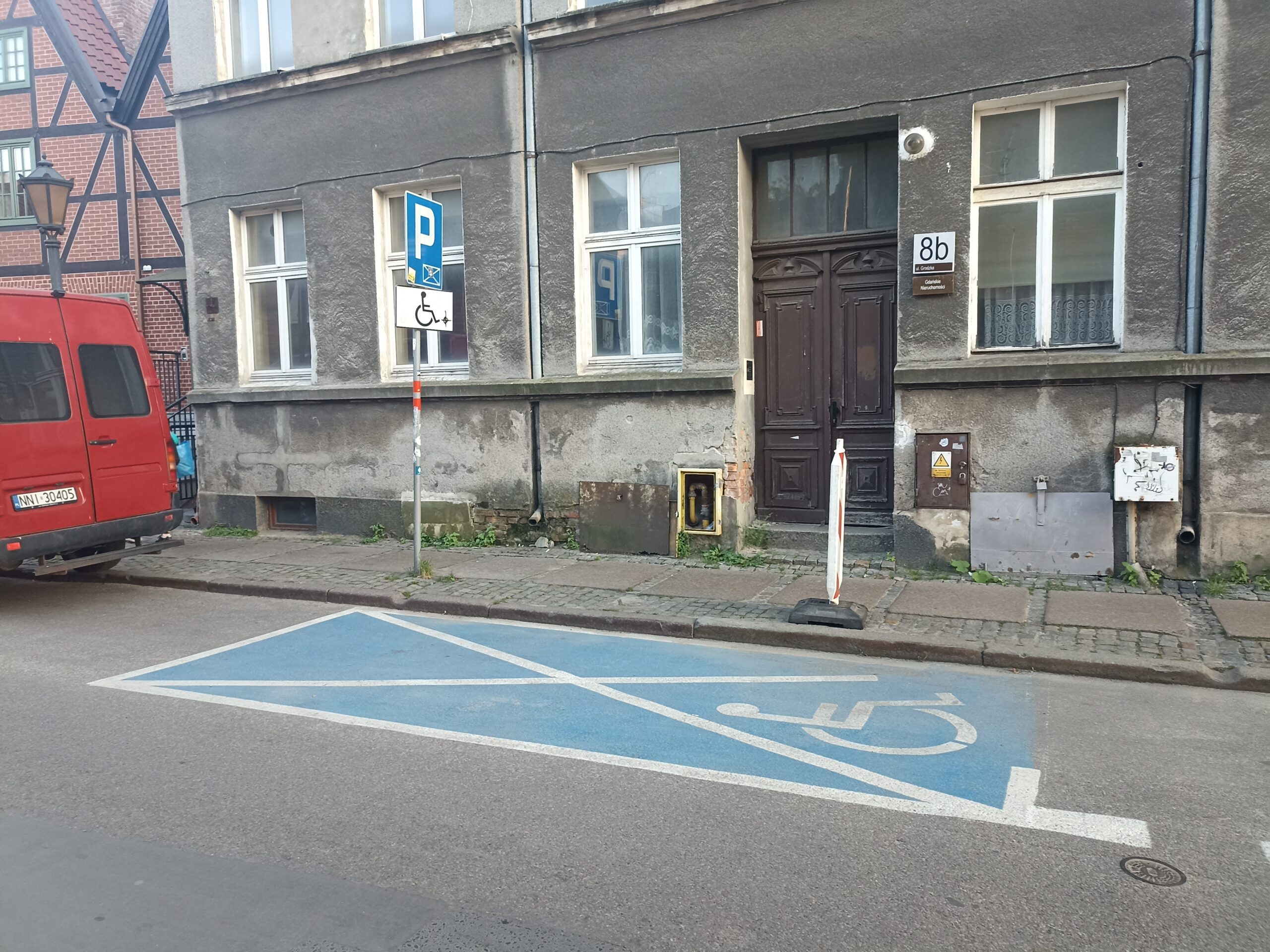 Tuż przy kładce na Ołowiankę, przy ul. Grodzkiej 8b, znajduje się jedno miejsce postojowe przeznaczone dla osób z niepełnosprawnościami. Dzięki pełnemu oznakowaniu pionowemu i poziomemu jest ono dobrze widoczne i łatwe do odnalezienia. Lokalizacja miejsca jest bardzo dogodna – pozwala na szybkie dojście do kładki i przejście na Ołowiankę, a w pobliżu znajdują się liczne punkty usługowe oraz kulturalne, m.in. muzeum, urząd publiczny, sklepy oraz tereny rekreacyjne.