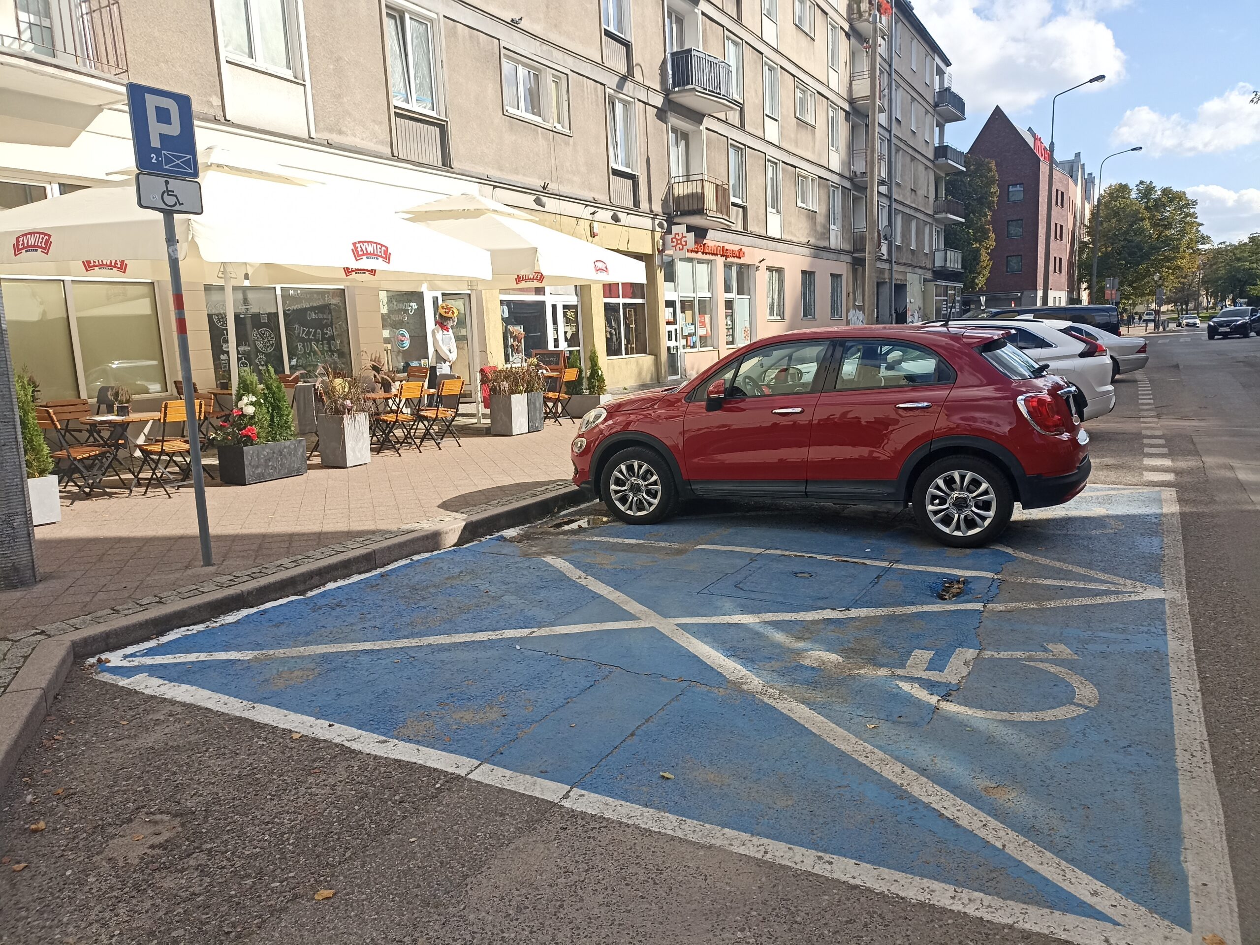Przy ulicy Łagiewniki 7 w Gdańsku znajdują się poszerzone miejsca parkingowe przeznaczone dla osób z niepełnosprawnościami. Miejsce ma pełne oznakowanie pionowe i poziome, a asfaltowa, równa nawierzchnia ułatwia wsiadanie i wysiadanie z pojazdu, także w przypadku poruszania się na wózku. Parkowanie prostopadłe zapewnia wygodny manewr, a dobra widoczność i oświetlenie zwiększają bezpieczeństwo o każdej porze dnia.