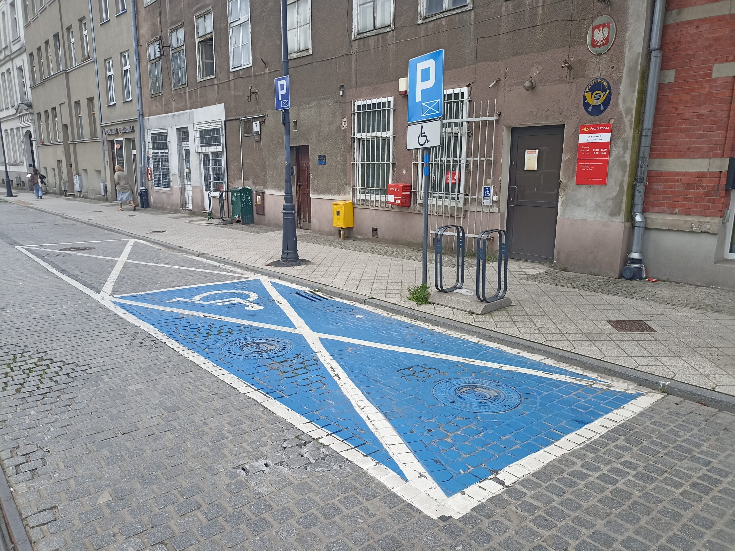 To dogodnie zlokalizowane miejsce postojowe znajduje się przy ul. Łąkowej 6 w Gdańsku. Położenie w pobliżu poczty, sklepu i przystanku komunikacji miejskiej sprawia, że jest to bardzo praktyczny punkt dla osób z niepełnosprawnościami, które chcą załatwić codzienne sprawy. Miejsce posiada pełne oznakowanie pionowe i poziome, a dzięki równoległemu ustawieniu parkowanie jest wygodne i intuicyjne. Nawierzchnia z kostki brukowej jest w dobrym stanie, co ułatwia swobodne poruszanie się zarówno na wózku, jak i o kulach.