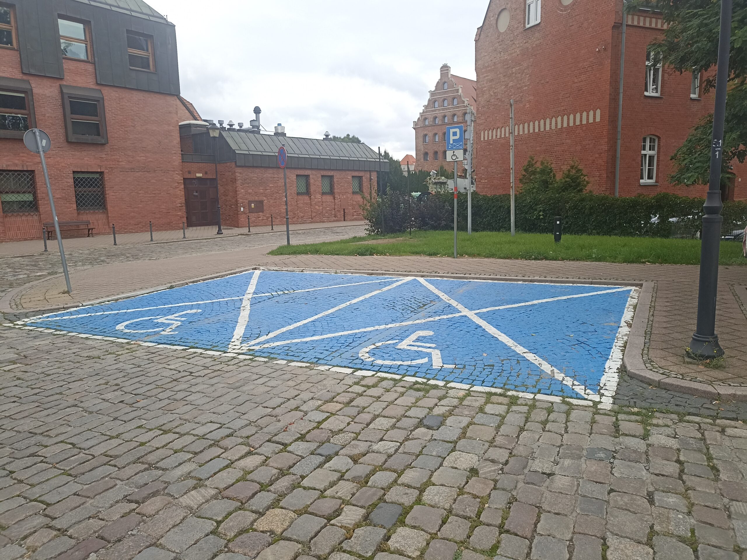 Na Ołowiance, naprzeciwko Narodowego Muzeum Morskiego, dostępne są dwa bezpłatne miejsca postojowe dla osób z niepełnosprawnością. Znajdują się one na parkingu publicznym, w układzie prostopadłym, na równej kostce brukowej. Stanowiska są wyraźnie wymalowane i posiadają pełne oznakowanie pionowe oraz poziome, co zapewnia ich dobrą widoczność. Dzięki odpowiedniej szerokości można komfortowo zaparkować i swobodnie wysiąść z pojazdu.