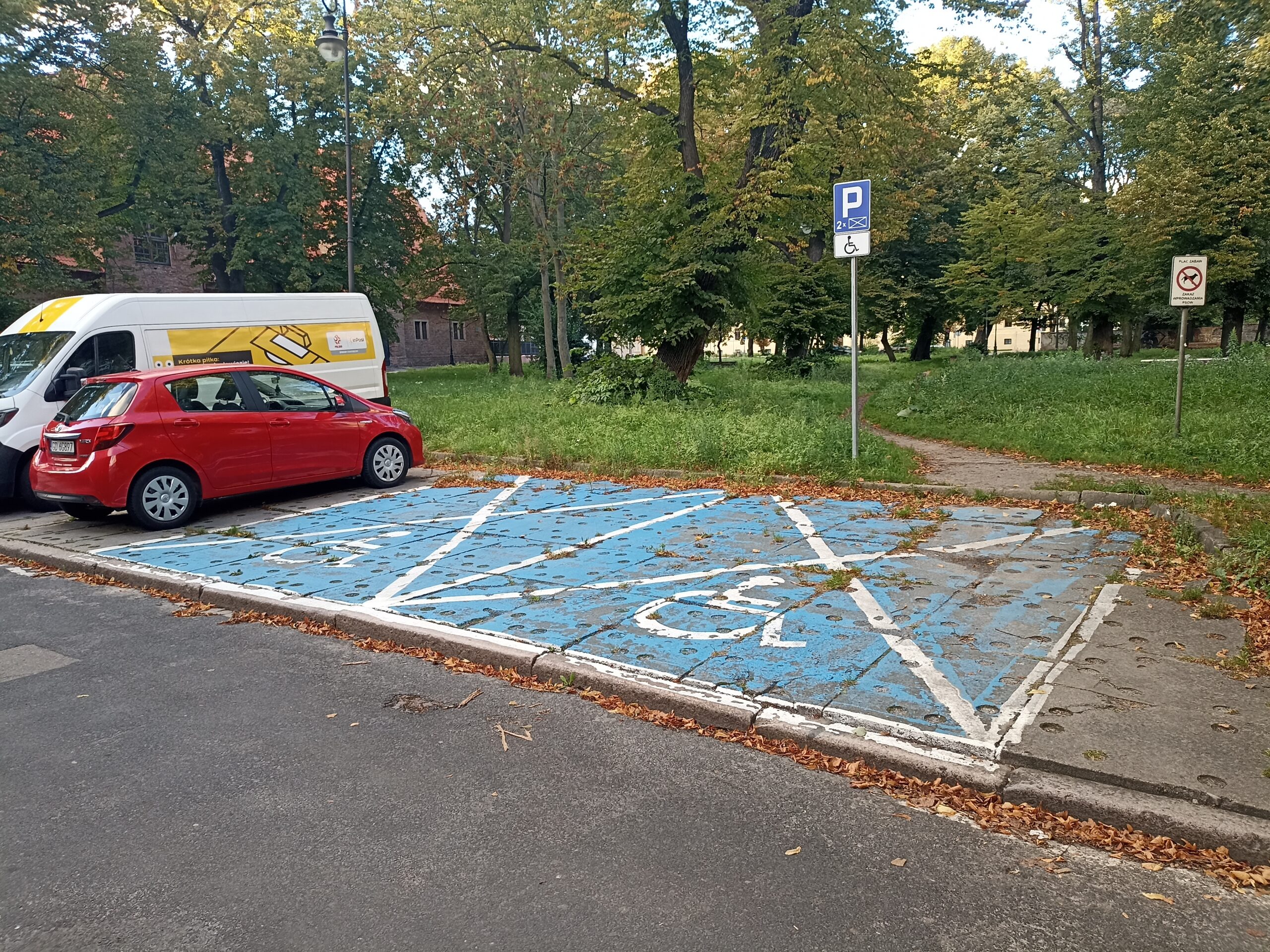 Na Placu Wałowym w Gdańsku dostępne są dwa miejsca postojowe dla osób z niepełnosprawnością, wykonane z płyt betonowych w bardzo dobrym stanie. Choć są one nieco ukryte i mniej spodziewane, stanowią cenne udogodnienie dla osób, które potrzebują zaparkować blisko celu. Miejsca są dobrze oznakowane pionowo i poziomo, a także oświetlone, co zapewnia widoczność i komfort użytkowania niezależnie od pory dnia.