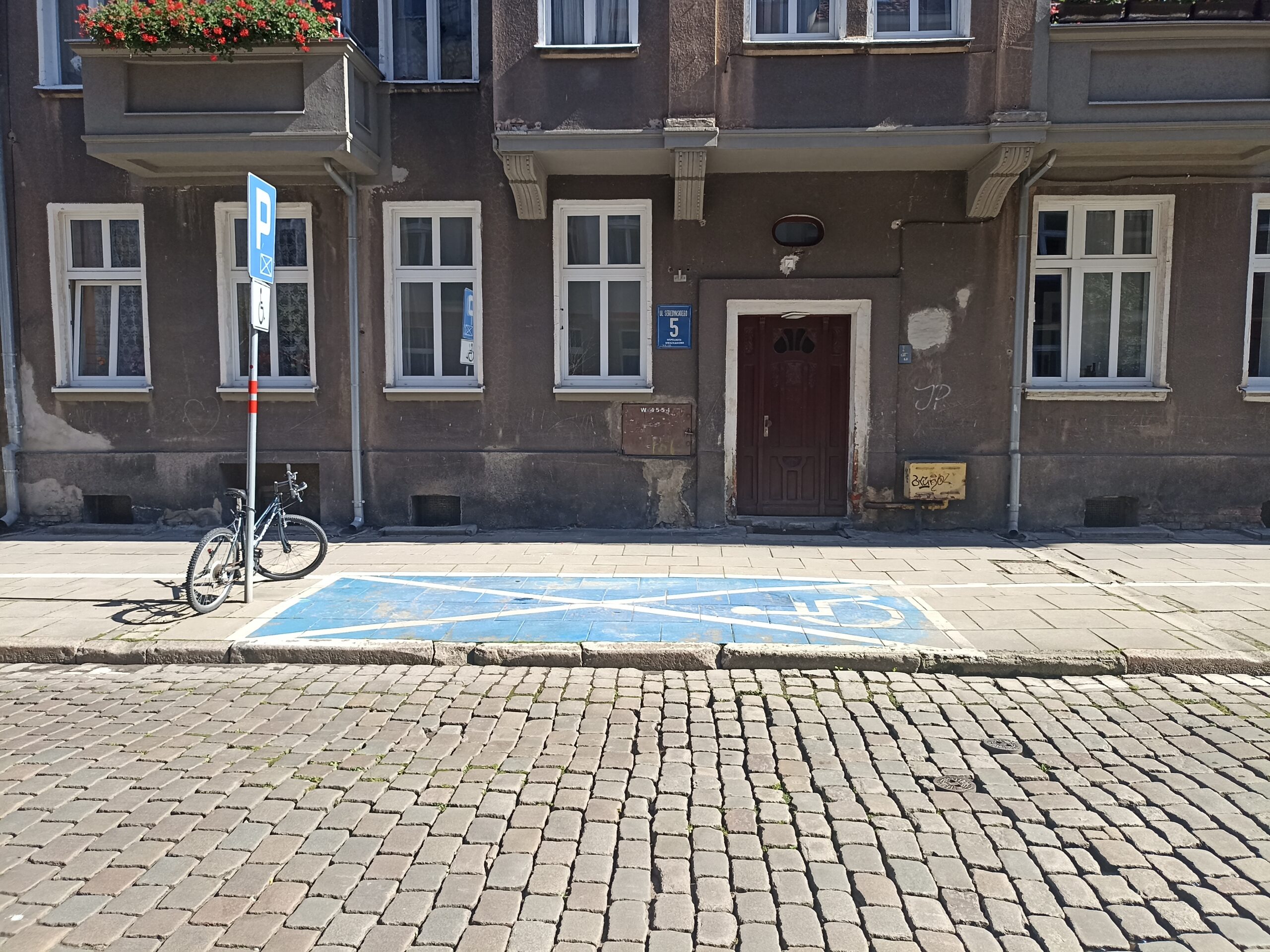To miejsce parkingowe dla osób niepełnosprawnych znajduje się na chodniku i jest dobrze oznakowane (znaki pionowe i poziome). Niestety, nie jest poszerzone, co może utrudniać swobodne otwieranie drzwi i wysiadanie. Dodatkowym wyzwaniem jest konieczność pokonania wyższego krawężnika samochodem, co wymaga ostrożności przy wjeździe i wyjeździe. Sama nawierzchnia jest stabilna i równa, a oświetlenie zapewnia bezpieczeństwo po zmroku.