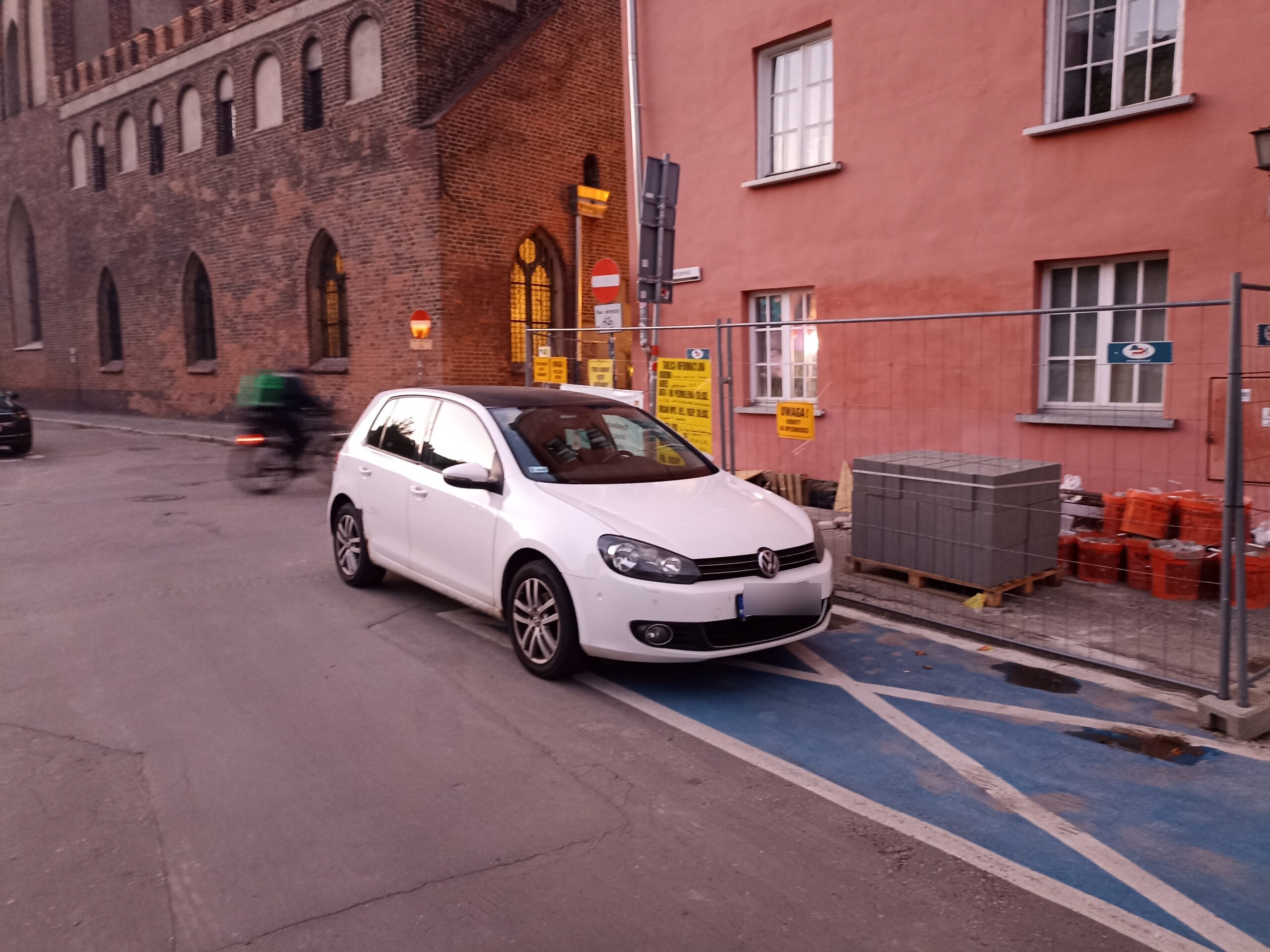 Mimo że miejsce ma standardową szerokość i jest usytuowane równolegle, jego położenie czyni je wyjątkowo praktycznym. W bezpośrednim sąsiedztwie znajdują się toalety, sklepy, wejścia do budynków oraz tereny rekreacyjne – park i plac zabaw. Dzięki temu miejsce to jest przyjazne i funkcjonalne dla osób z ograniczoną mobilnością, które chcą szybko i wygodnie dotrzeć zarówno do punktów usługowych, jak i terenów zielonych w centrum miasta.