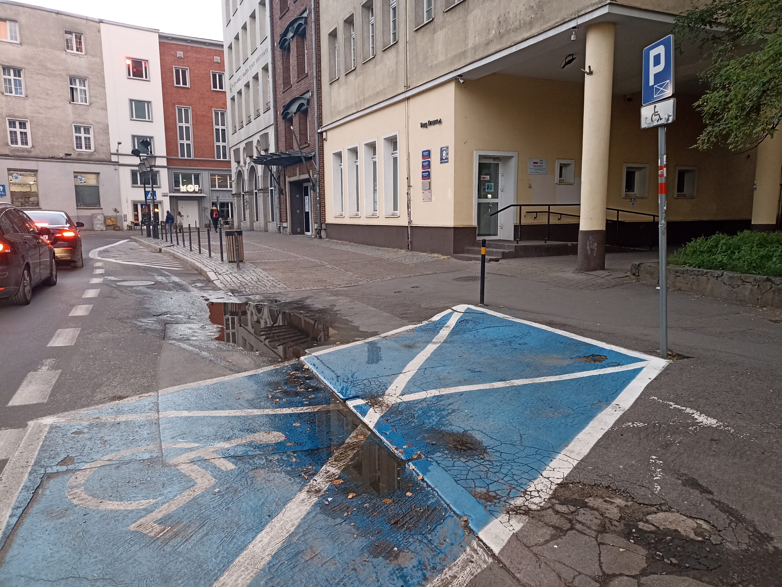 Miejsce parkingowe zlokalizowane przy Domu Prasy na Targu Drzewnym w Gdańsku to wygodna opcja dla osób z niepełnosprawnością. Parking jest skośny, wykonany z nawierzchni asfaltowej, a jego oznakowanie pionowe i poziome sprawia, że łatwo je odnaleźć. Dostępne jest oświetlenie, dzięki czemu można bezpiecznie korzystać z postoju również po zmroku. Stan miejsca oceniany jest jako średni, ale nie utrudnia to wysiadania czy poruszania się wózkiem.