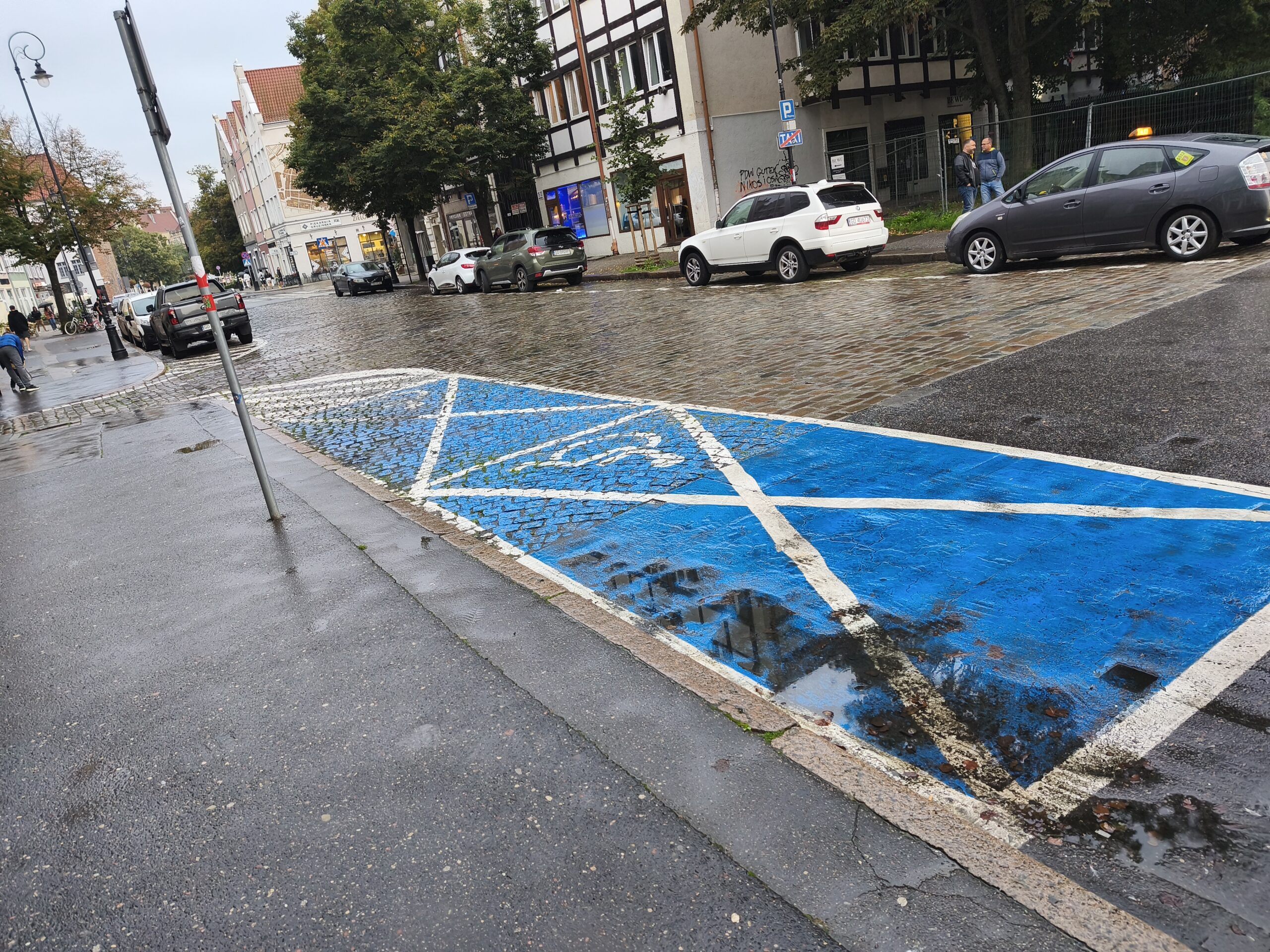 Przy ul. Szerokiej 18/19 w Gdańsku znajdują się dwa ogólnodostępne miejsca postojowe przeznaczone dla osób z niepełnosprawnościami. Stanowiska wykonane są z kostki brukowej i posiadają pełne oznakowanie pionowe oraz poziome, co ułatwia ich odnalezienie i poprawia bezpieczeństwo. Parkowanie odbywa się równolegle, a standardowa szerokość miejsc zapewnia komfort podczas korzystania. Oświetlenie sprawia, że miejsca są funkcjonalne także po zmroku, a brak limitu czasowego pozwala na swobodne planowanie pobytu. Choć znajdują się one w strefie płatnego parkowania, korzystanie z nich jest bezpłatne. Stan techniczny oceniany jest jako bardzo dobry.