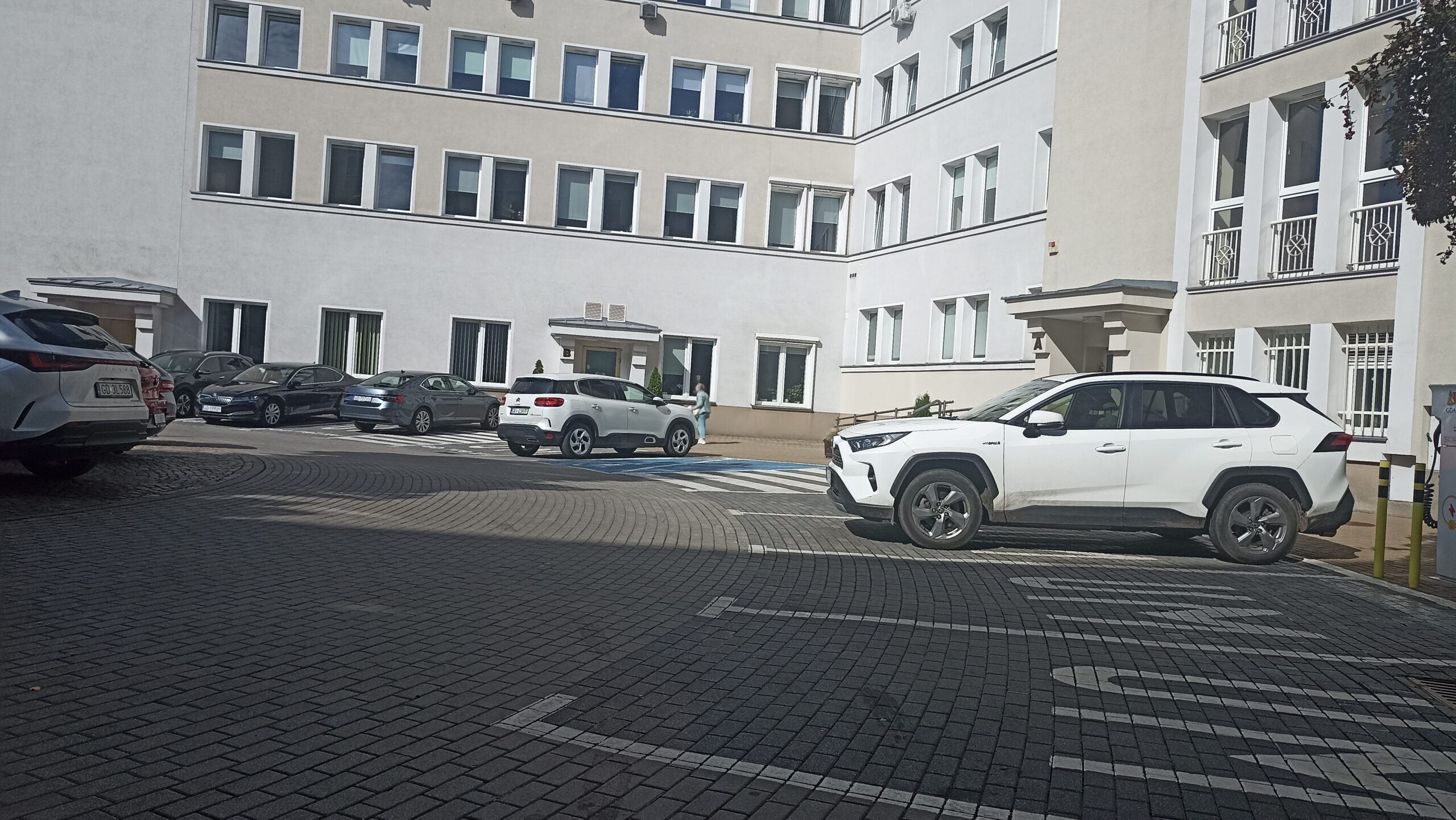 Miejsce postojowe przed wejściem od Urzędu Miejskiego w Gdańsku od zaplecza. Miejsce dla klientów, by wjechać na teren placówki pn. Urząd Miejski w Gdańsku należy przejechać przez szlaban ochrony obiektu od strony ul. 3 Maja.