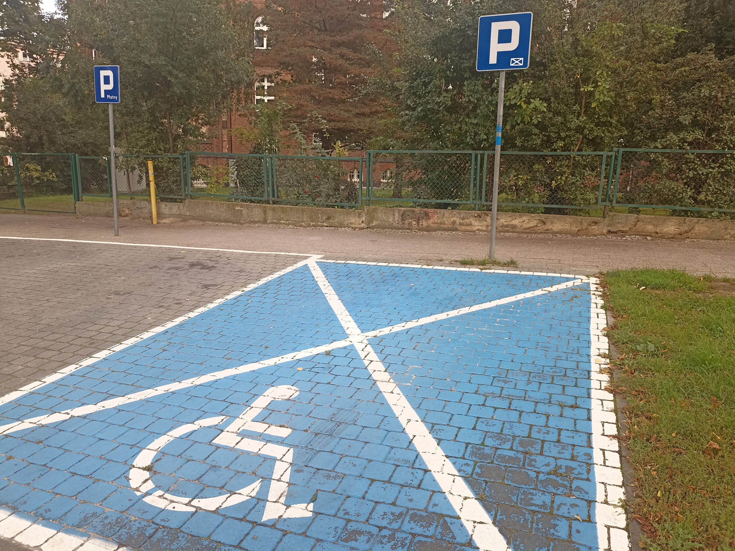 Warto jednak zwrócić uwagę na pewne utrudnienie – zdarza się, że samochody zaparkowane na sąsiednich standardowych miejscach mogą ograniczać swobodę manewrowania i wjazdu na to miejsce. Parking jest ogólnodostępny i bezpłatny, znajduje się w strefie płatnego parkowania (parkomaty i aplikacje), a czas postoju nie jest limitowany. W najbliższym otoczeniu dostępne są ważne punkty, takie jak sklep, przystanek komunikacji miejskiej, szkoła i muzeum, co zwiększa funkcjonalność tego miejsca dla osób z niepełnosprawnością.